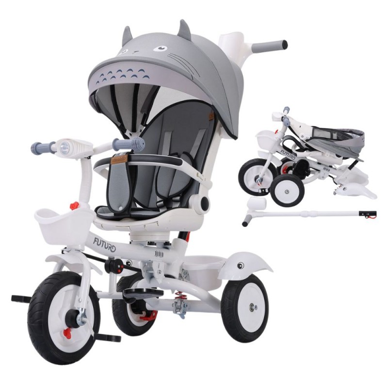 Plegado de la parte trasera del triciclo para un fácil almacenamiento;
